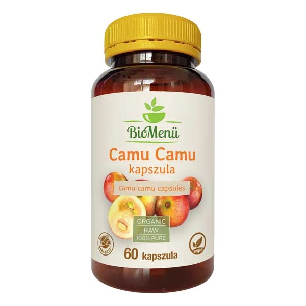 Összetevők: 100% bio camu camu (myrciaria dubia) por; térfogatnövelő szer: mikrokristályos cellulóz; csomósodást gátló anyag: magnézium-sztearát, szilícium-dioxid; kapszulahéj: hidroxipropil-metil-cellulóz