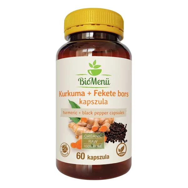 A BioMenü BIO KURKUMA + FEKETE BORS kapszula egy olyan különleges táplálékkiegészítő, amely a hagyományos ájurikus gyógyászat értékeit ötvözi a modern tudományos megoldásokkal. A prémium minőségű, Indiából szmazó kurkuma és a felszívódást fokozó fekete bors egyedülálló kombinációja nemcsak egészséges, de rendkívül praktikus választás is. Ez a bio termék vegán összetevőkből készült, és mentes minden mesterséges adalékanyagtól, így nemcsak a természetes életmódot folytatók, hanem mindenki számára ideális választás. Zsírszegény és alacsony cukortartalmával, valamint gazdag élelmi rostokban segít támogatni a mindennapi egészséges táplálkozást. Ajánlott napi adagja mindössze 2 kapszula, amely könnyedén beilleszthető bármilyen napi rutinba. A BioMenü kapszula a természet valódi erejét hozza el, így hozzájárul jólétéhez és vitalitásához. Élvezze a kurkuma és fekete bors jótékony hatásait ilyen egyszerű és praktikus formában, ezzel aktívan támogathatja szervezete egészségét!