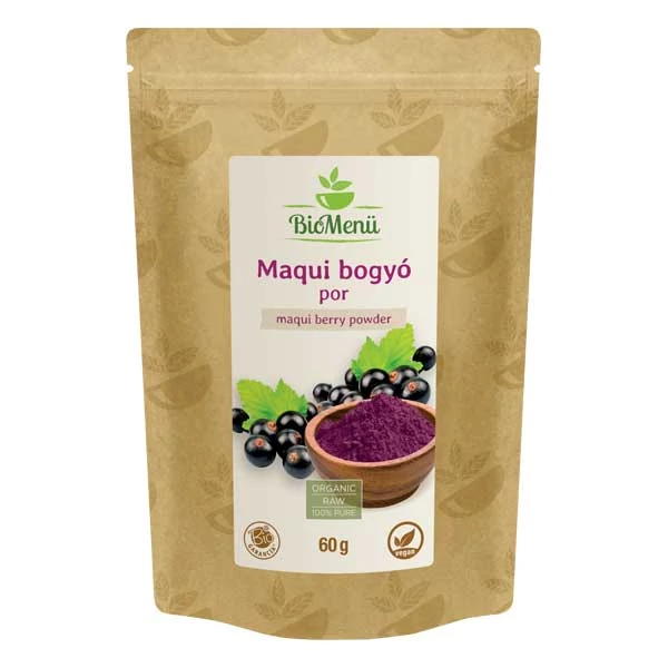 Összetevők: 100% bio, fagyasztva szárított (liofilizált) maqui bogyó (aristotelia chilensis) gyümölcshús (héj nélkül)