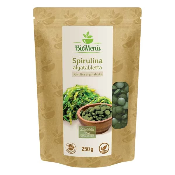 A BioMenü BIO SPIRULINA ALGA tabletta egy rendkívül tápláló étrend-kiegészítő, amely immunerősítő és antioxidáns hatásáról ismert. A spirulina alga különleges kivonata gazdag vitaminokban és fehérjében, így hatékonyan támogatja a szervezet méregtelenítését és általános egészségi állapotát. Ez a bio, vegán termék kizárólag természetes összetevőkből készült, mentes a mesterséges ízesítőktől, színezékektől és tartósítószerektől. Zsírszegény és alacsony cukortartalmú, emellett élelmi rostokban és fehérjében gazdag, ideális választás mindazok számára, akik egészséges és kiegyensúlyozott étrendre törekednek. Ajánlott napi adagja 6-10 tabletta, amelyet célszerű 2-3 részletben, étkezés előtt, bőséges folyadékkal bevenni. Az első héten javasolt csak fél adag használata, hogy a szervezet fokozatosan alkalmazkodjon. A termék Kínából származik, és tökéletes kiegészítője a mindennapi vitamin- és ásványianyag-bevitelnek, hozzájárulva ezzel általános jóllétéhez. Kérjük, vegye figyelembe a napi ajánlott mennyiséget, és ne lépje túl azt. Az étrend-kiegészítő nem helyettesíti a vegyes étrendet és az egészséges életmódot. A természetes összetevők miatt a táplálkozási tulajdonságok változhatnak a környezeti feltételek és az idő múlása függvényében. Tartsa a terméket elzárva, gyermekek számára hozzáférhetetlen helyen.