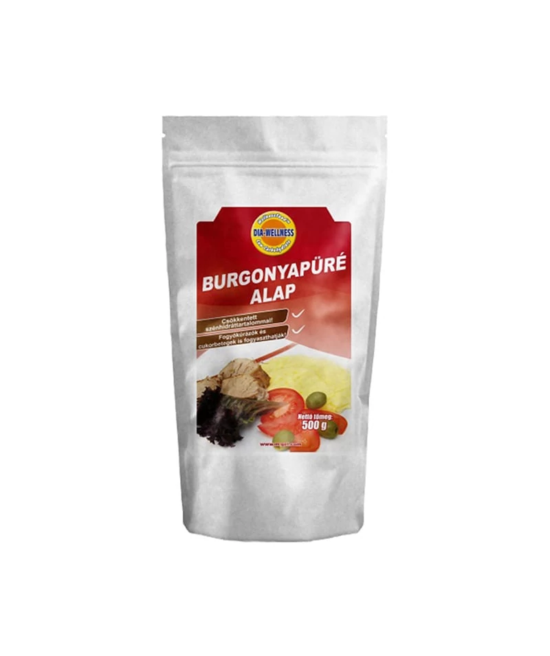 250g Dia-wellness burgonyapüré alap, 600g víz, 2db tojás, 100g Dia-wellness sütőliszt, 100g Dia-wellness panírmorzsa, só ízlés szerint