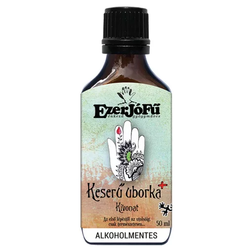 Az EzerJóFű Keserű uborka+ kivonat 50ml alkoholmentes, növényi glicerinnel készült étrend-kiegészítő, amely a keserű uborka jótékony hatásait más értékes növényi összetevőkkel kombinálja. Segít a méregtelenítésben, támogathatja a bélflórát és javíthatja az emésztést. A készítmény elősegíti a normál anyagcserét, támogatja a vízháztartást és hozzájárul a bélműködés egészségéhez. Kiváló választás a természetes méregtelenítéshez és a jól működő emésztéshez.