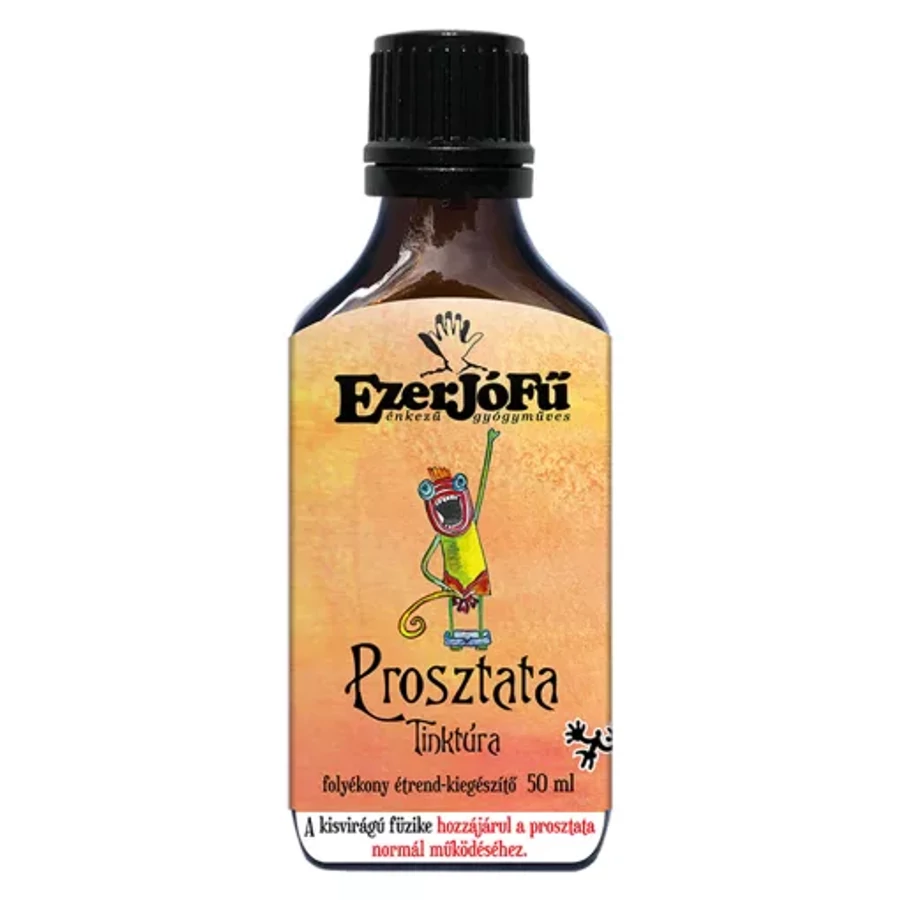 Az EzerJóFű Prosztata tinktúra egy 50 ml-es, alkoholos étrend-kiegészítő, amely gondosan összeválogatott gyógynövényekkel segíti a prosztata egészségének megőrzését. Rendszeres használata hozzájárulhat a normál vizeletáramlás fenntartásához, enyhítheti a húgyutak kellemetlen tüneteit, és támogathatja a férfiak életminőségét idősebb korban is.