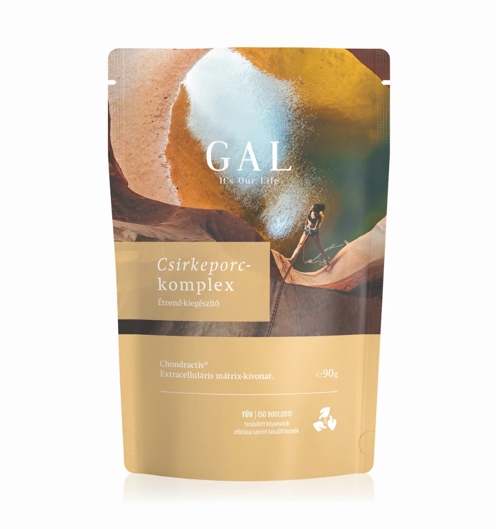 A 3 féle kollagéntermék típus közül kettővel már rendelkeztünk (3 féle az elsőből: GAL Hal-/Marha-/Sertéskollagén peptidek, illetve GAL UC-II® Porc-komplex a második típusból). Most végre az összes típus megtalálható az új GAL Csirkeporc-komplex (Chondractiv® extracelluláris mátrix-kivonat) megjelenésével.