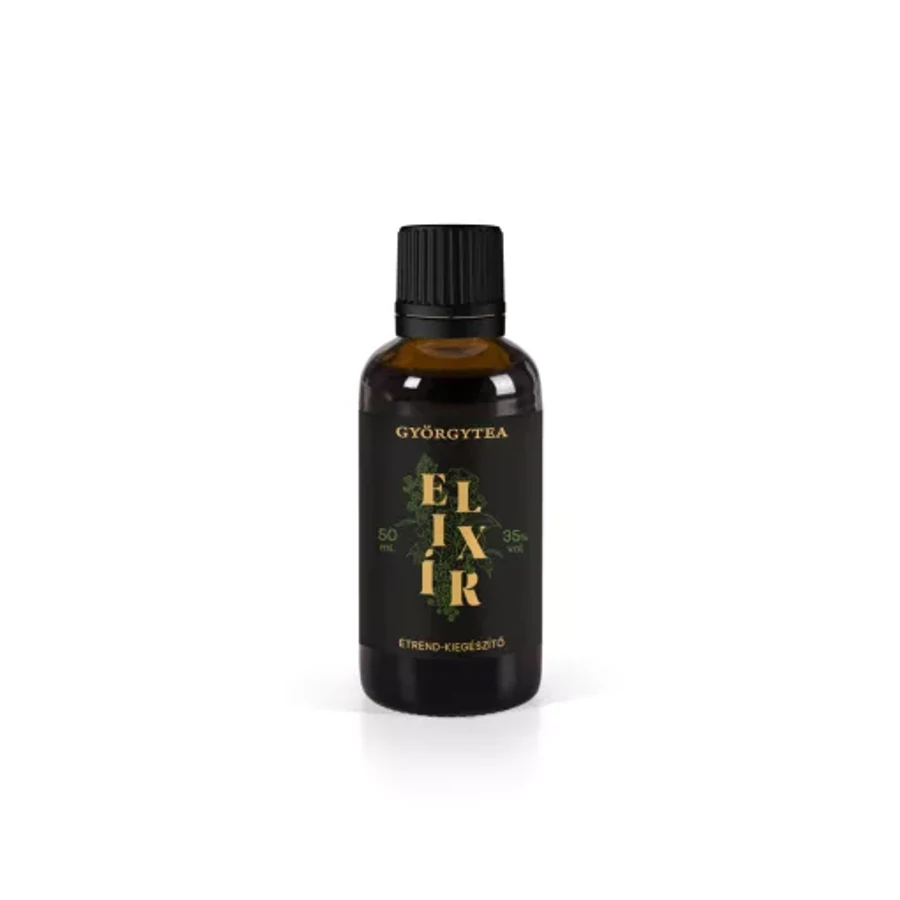 A Györgytea Elixír (svédcsepp) 50 ml-es étrend-kiegészítő 11 gondosan válogatott gyógynövény kivonatát tartalmazza, melyek egymás hatását erősítve támogatják az emésztőrendszer működését. Hagyományosan étvágyjavításra, puffadás enyhítésére és általános közérzetjavításra használják. Kesernyés íze segítheti a gyomornedvek termelődését, rendszeres fogyasztása pedig hozzájárulhat a természetes vitalitás fenntartásához.