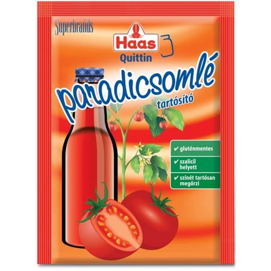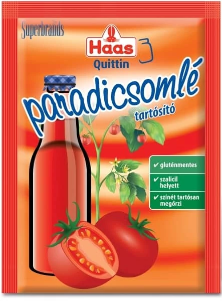 - A kívánt sűrűség elérése után a Haas Quittin Paradicsomlé tartósító tartósítószer-keveréket old fel kevés meleg paradicsomlében ( vegyél ki egy pohárba egy keveset), majd a tűzről levéve jól keverd el a többi paradicsomlével.
