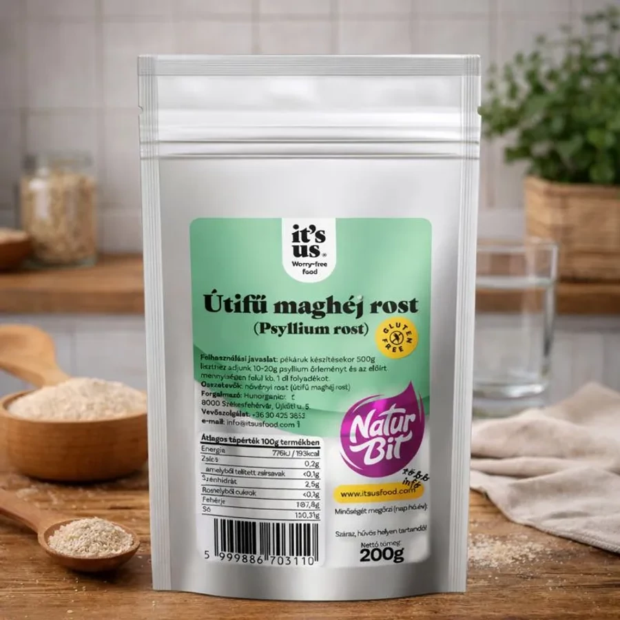 • Gluténmentes sütéshez: kb. 20–25 g psyllium 500 g liszthez, extra folyadékkal