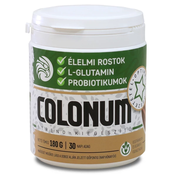 A Colonum egy magas rost és probiotikum tartalmú készítmény, mely L-glutamint [01.] is tartalmaz, ami a bélfal regenerálásában segít.