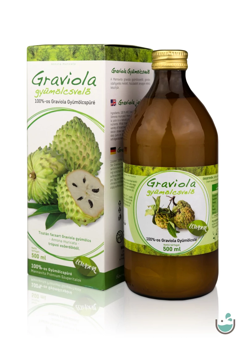 | Összetevők | 100 %-os Graviola gyümölcsvelő (nem koncentrátumból készült). |