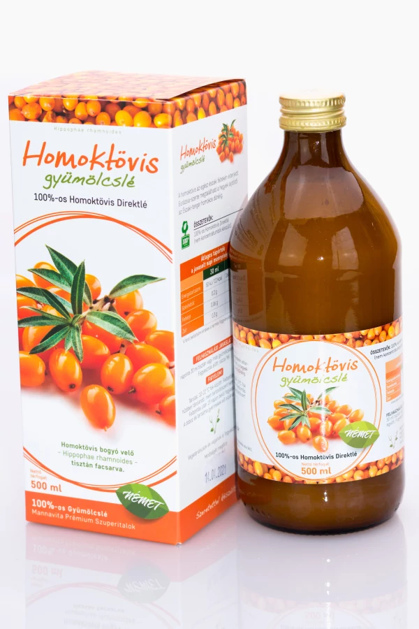 | Összetevők | 100%-os Homoktövis Direktlé (nem koncentrátumból készült) |