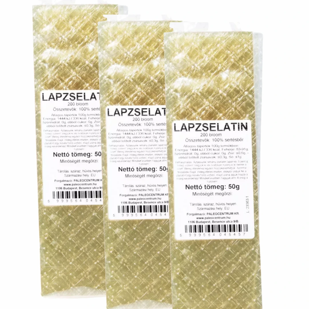 Felhasználás: Áztassunk néhány zselatin lapot kb. 5 percig hideg vízben! Vegyük ki és óvatosan nyomjuk ki belőle a vizet. Meleg ételekhez egyből hozzákeverhetjük. Azonnal feloldódik majd. Hideg ételek esetén, először oldjuk fel a zselatint egy kevés forró vízben, majd utána adjuk hozzá a hideg keverékhez. Mindkét esetben hagyjuk állni 4 óráig a hűtőben.