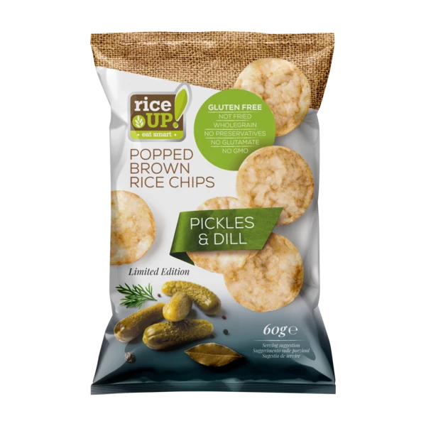 Rice UP! Hagymás–tejfölös ízesítésű barna rizs chips 60 g