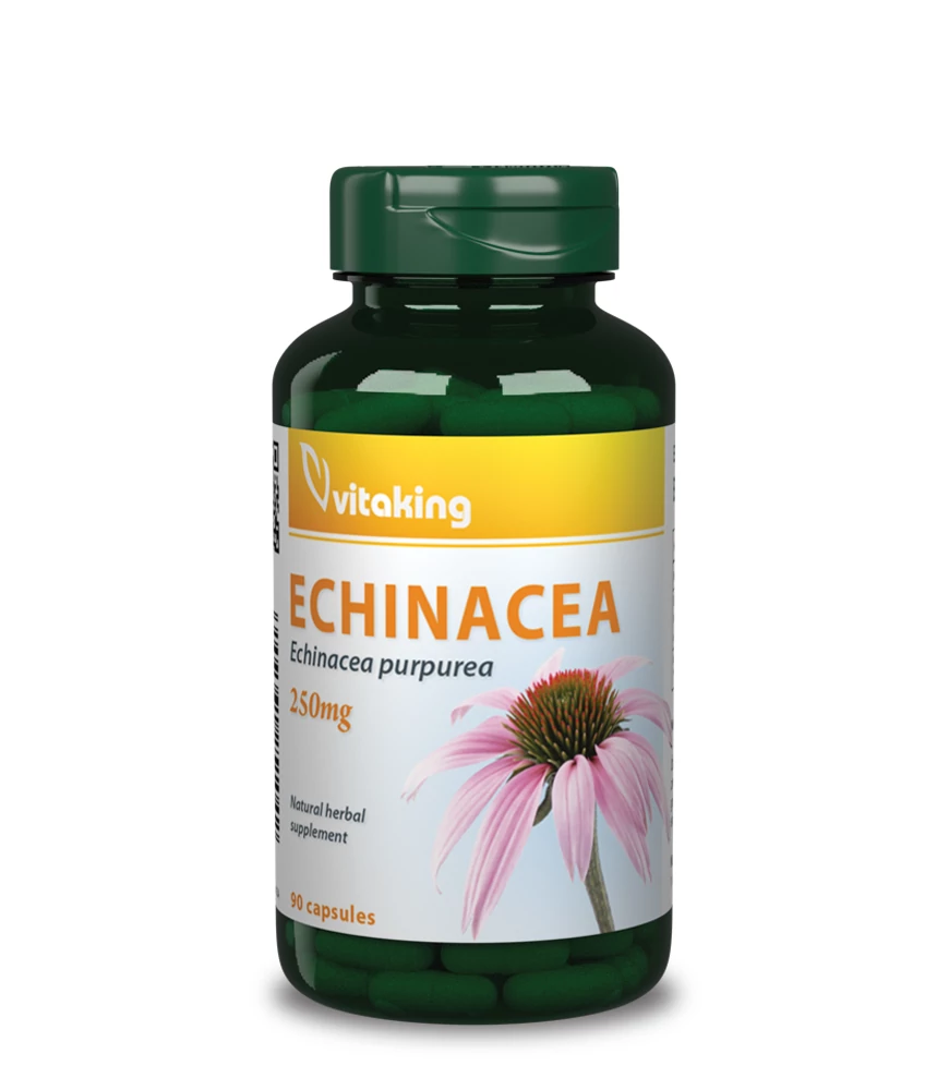 A Vitaking Echinacea készítménye 250 mg bíbor kasvirág kivonatot tartalmaz kapszulánként, ami megfelel 1000 mg friss bíbor kasvirág növénynek.